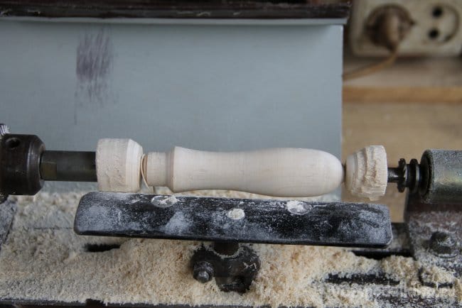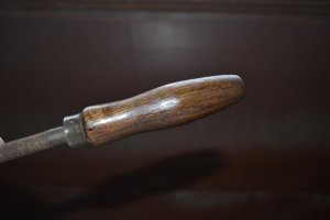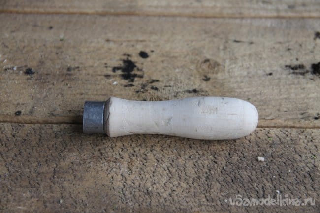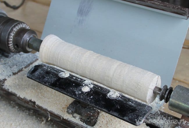 Вытачиваем ручку при помощи рейера. Закончив черновую обработку, прошкуриваем ручку (чистовая обработка) для шила шлифовальной бумагой зернистостью P40.
