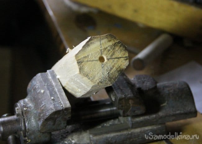 С торцов сверлим глухие отверстия на глубину 5-10 мм сверлом диаметром 5-8 мм.