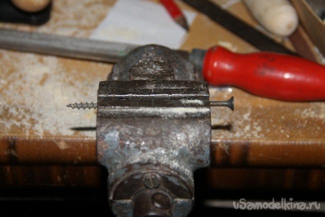 Возьмём саморез и ножовкой по металлу обрежем шляпку.