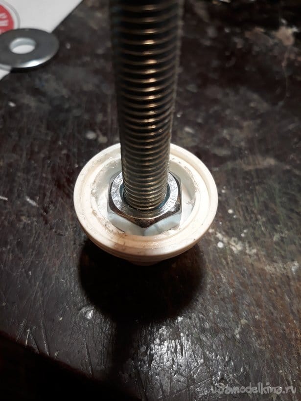 От шпильки с резьбой М10, сложив вес высотные размеры, отрезал нужную длину. Я, отрезал с небольшим запасом. Так на всякий случай.