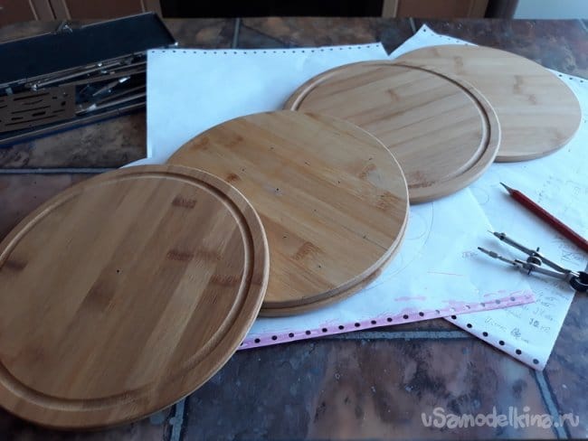 Тут я думаю рекомендовать что-то конкретно нет смысла. Так как каждый будет исходить из того, что он имеет в наличии. Я, например, использовал готовые разделочные доски из бамбука диаметром 250 мм.