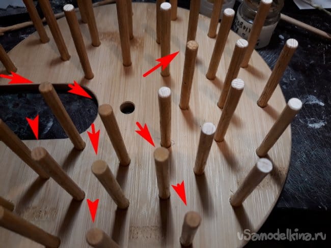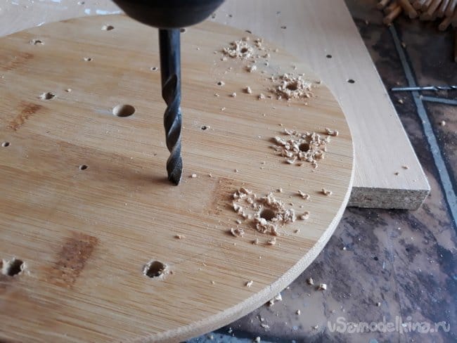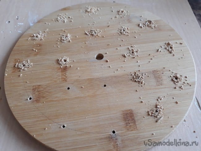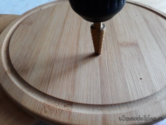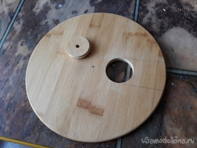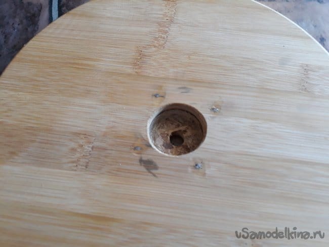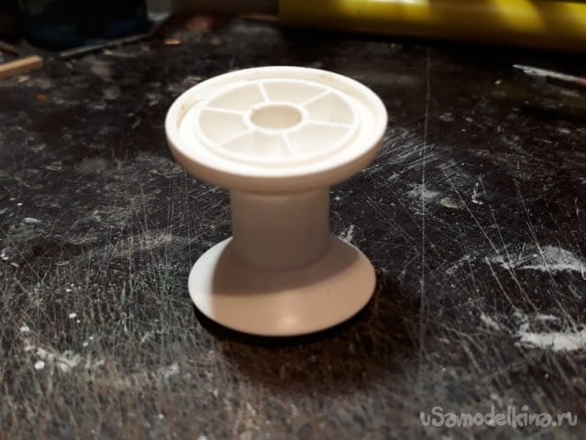 В основании катушницы, в центре просверлил точно такое же отверстие.
