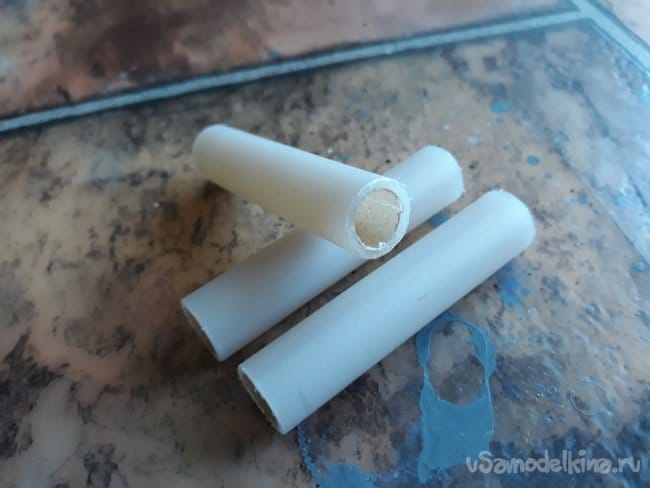 Из пластиковой трубки с внутренним диаметром 10 мм, нарезал три детали по 70 мм длинной.