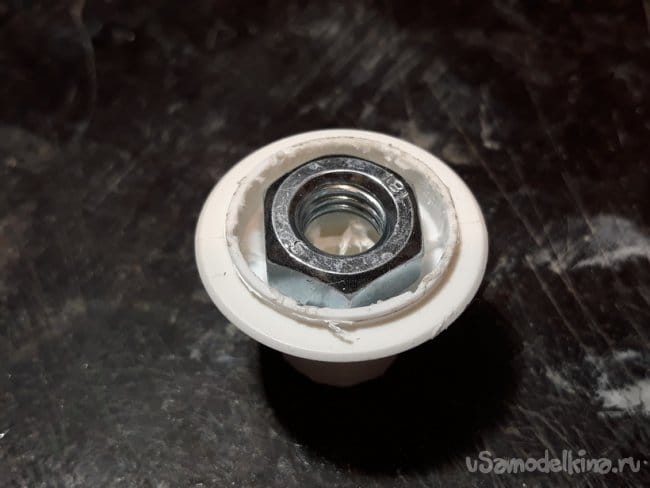 Далее гайку посадил на суперклей «Секунда». Но, кто считает, что этого мало, ее можно заштифтовать.