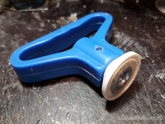 Для удобства переноса задуманной катушницы, из ручки бытового поршневого вантуза и толстой катушки, решил сделать удобную ручку для этой цели.