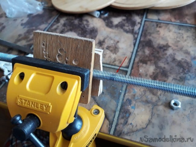 Из фото видно, что шпильку взял с запасом по длине. Необходимо ее укоротить на высоту гайки. Для Этого собственно и была проведена предварительная сборка конструкции.