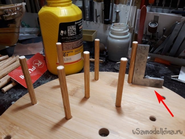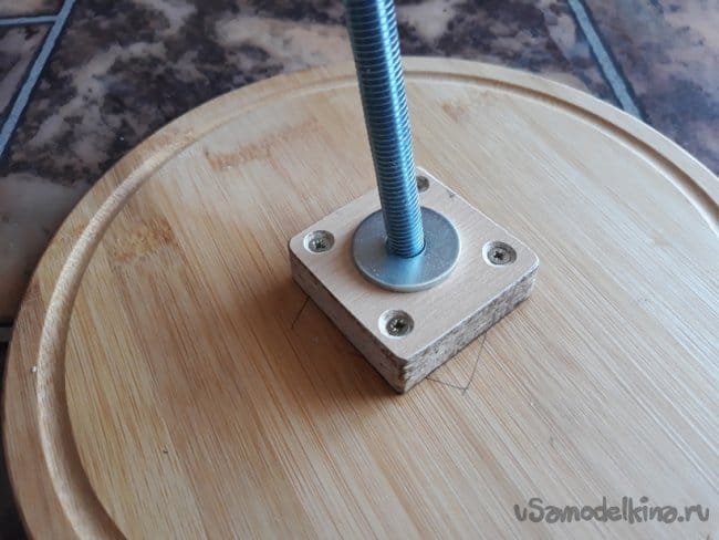 Далее брусок закрепил на клей ПВА и саморезы в центре основания.