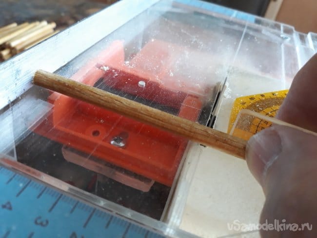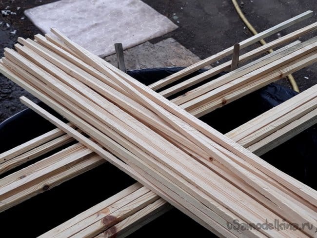 Как я не пытался найти, что-то подходящее направляющие, уже в готовом виде, у меня ничего не получилось. Поэтому было принято решение изготовить самостоятельно. Не мудрствуя лукаво, сделал из того, что было под рукой – хороший сосновый брусок. Напилил квадратных реек (8 х 8 мм). Напилил с запасом.
