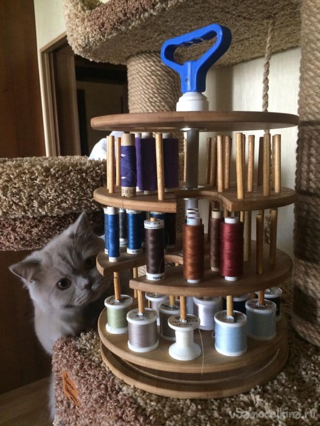 Сегодня хочу рассказать, как из подручных средств сделать для любимых женщин катушницу – место для временного хранения катушек с нитками. Женщины, которые занимаются шитьем или вышивкой всегда куча ниток и они, как правило, хранятся в коробках, сундучках и тому подобное. Это не совсем удобно. Как и любому мастеру одновременно не нужны все имеющиеся у него инструменты. Для определенной работы выбирается необходимый инструмент, остальной лежит на своем месте и не «захламляет» стол. Так и у швеи в нужный момент необходимы определенные нитки, как по толщине, так и по цвету.