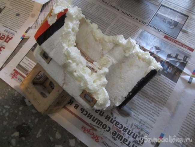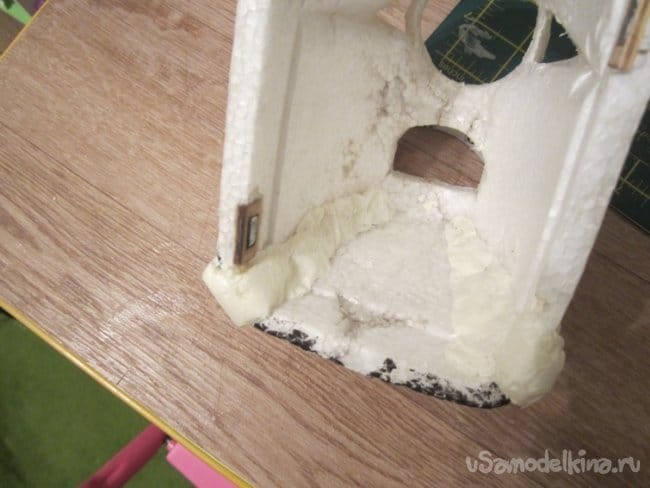 Места склейки смачиваю водой из цветочного распылителя. Пена лучше прилипает и быстрее застывает.