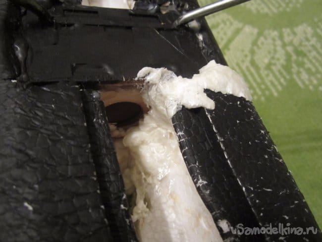 Наношу немного пены, прикладываю запчасти друг к другу, опять пеню опять приминаю пену. Не даю ей сильно пучится. Короче из пены делаю клей густой желательно.