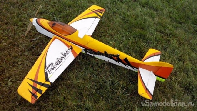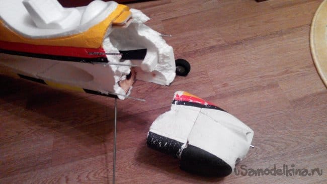 Полное разрушение носовой части пилотажки произошло после моей попытки выполнить пилотажную фигуру «силовая бочка» (torque roll). Самолет зависает и проворачивается элеронами вокруг вертикальной оси, удерживается от качания рудером элеватором.