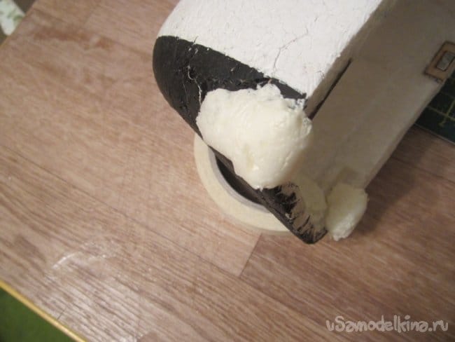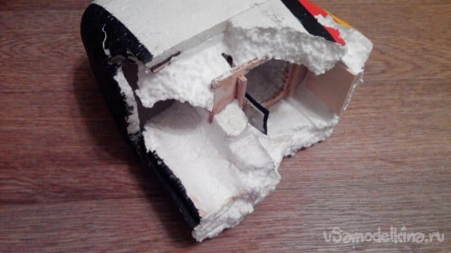 Подрезаю пену ножом. Самые страшные места закрасил моим любимым художественным акрилом "глубокая черная".