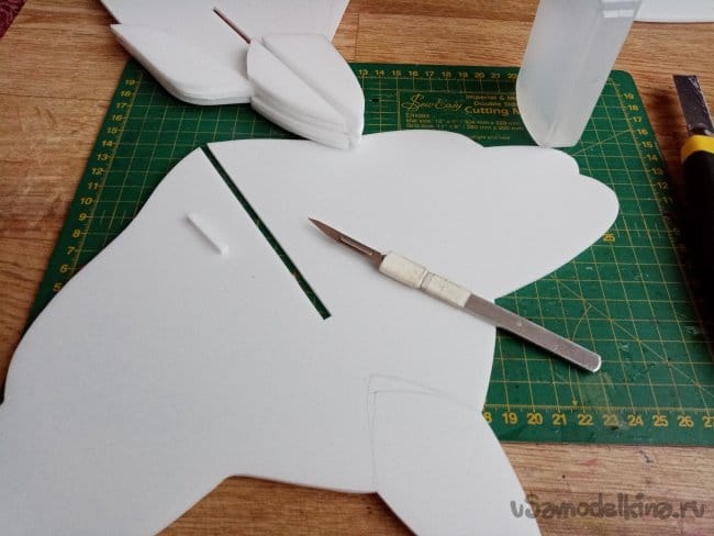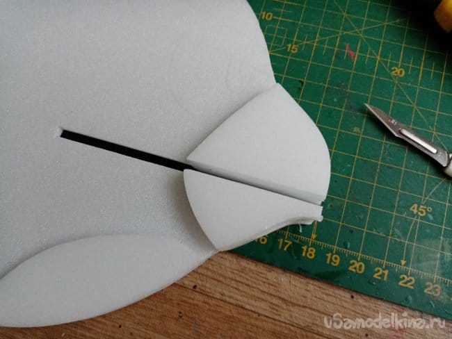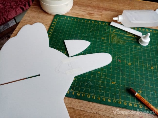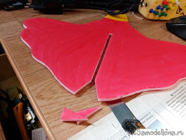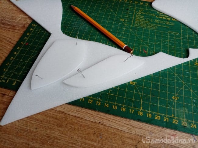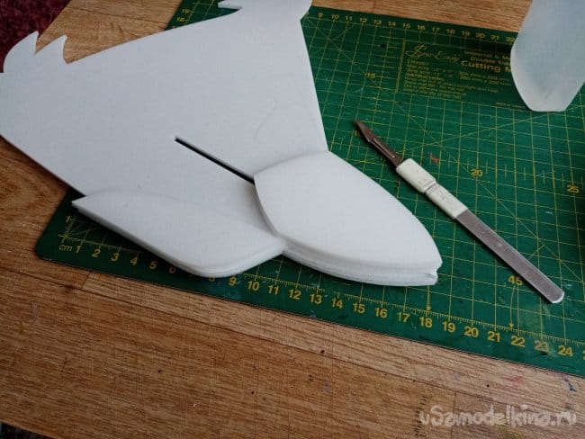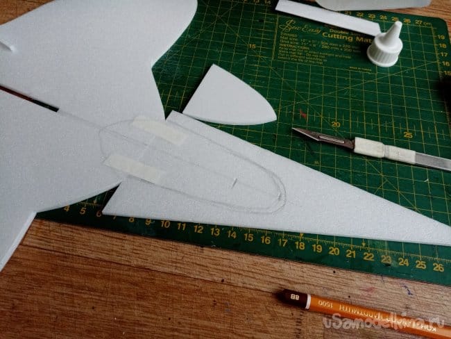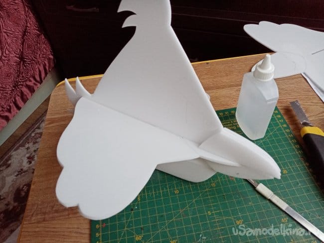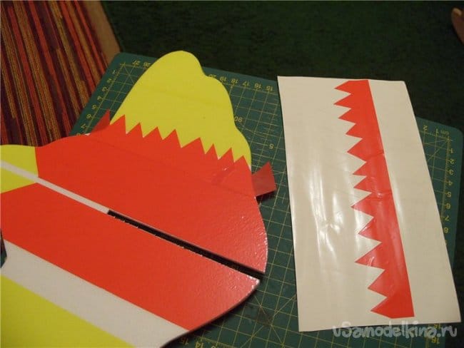 На кончиках крыльев сделал небольшие вырезы. в этом месте они не будут приклеиваться. Можно отгибать для корректировки полета.