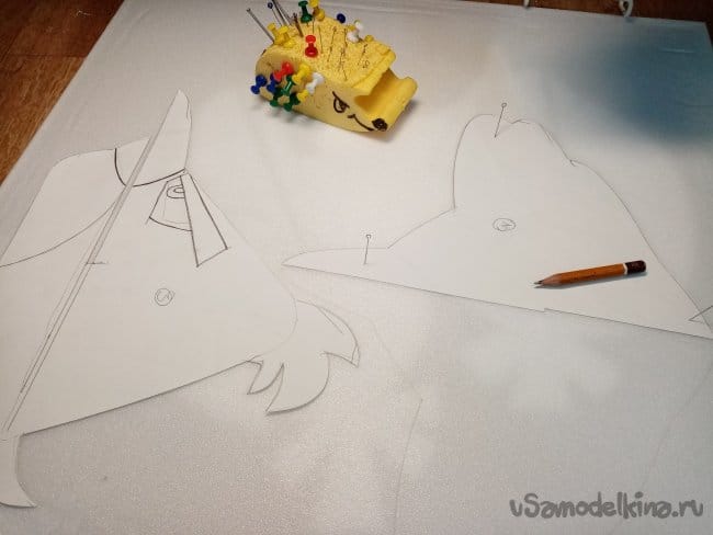 Чтобы не чего не сдвигалось и не ерзало шаблоны закреплял иголками, размечал карандашом 8В.