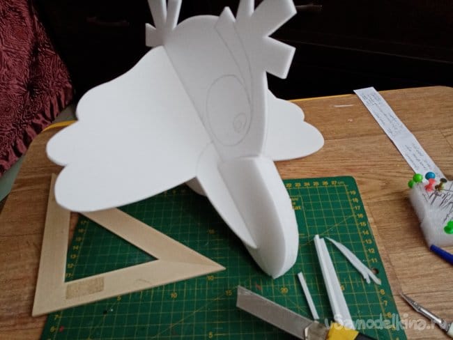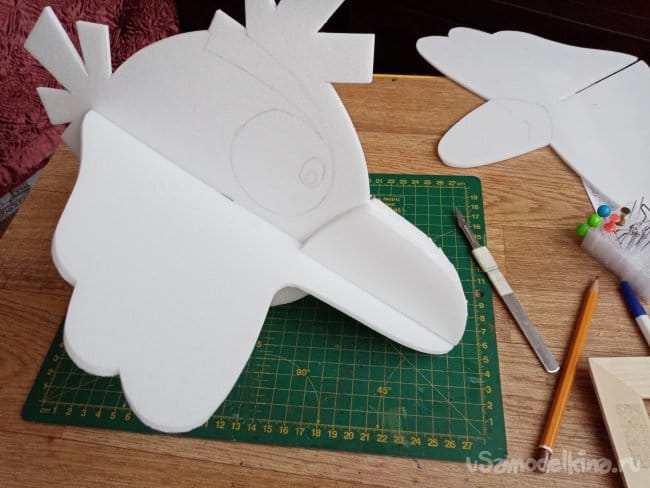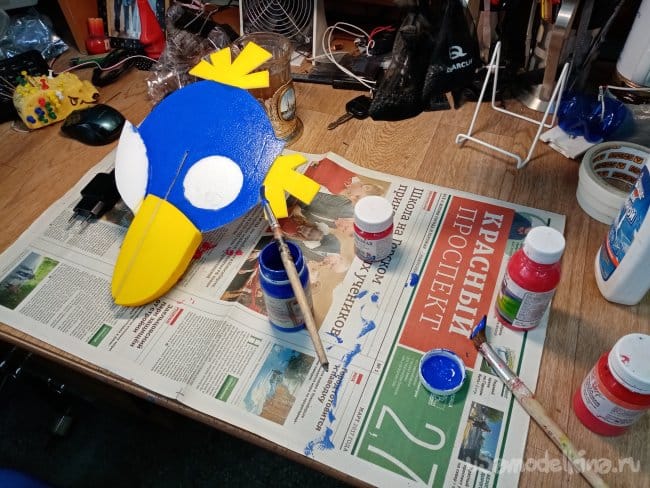 Пробные полеты не удались, слишком задняя центровка. Начинаю двигать крылышки назад. Не очень хочется втыкать в клювик гвоздик или шурупчик утяжеления. Птиц должен быть безопасным при ударах.