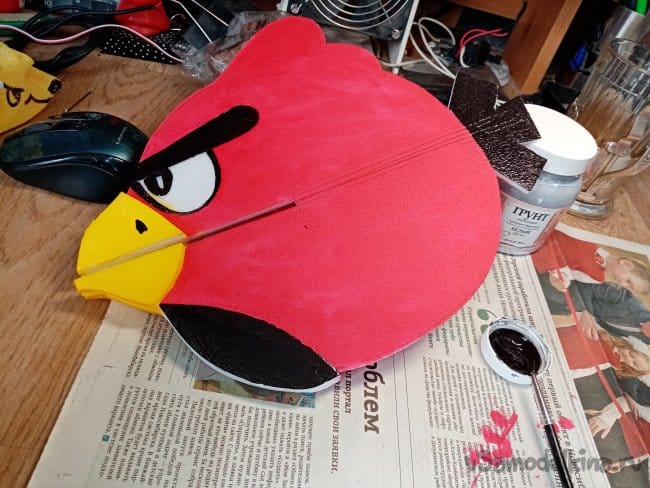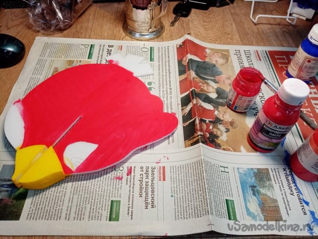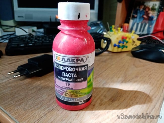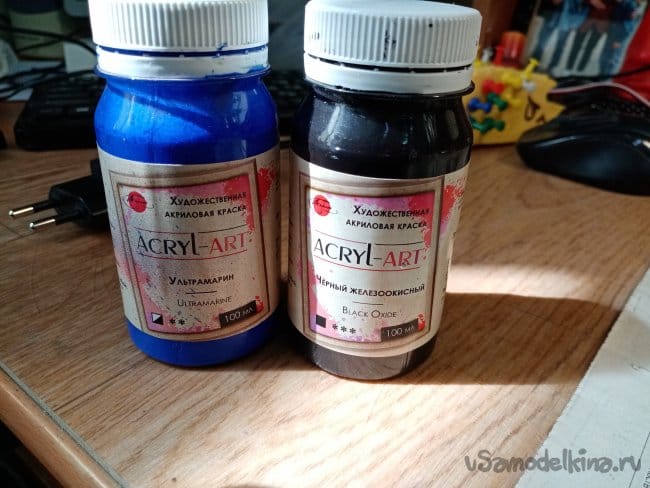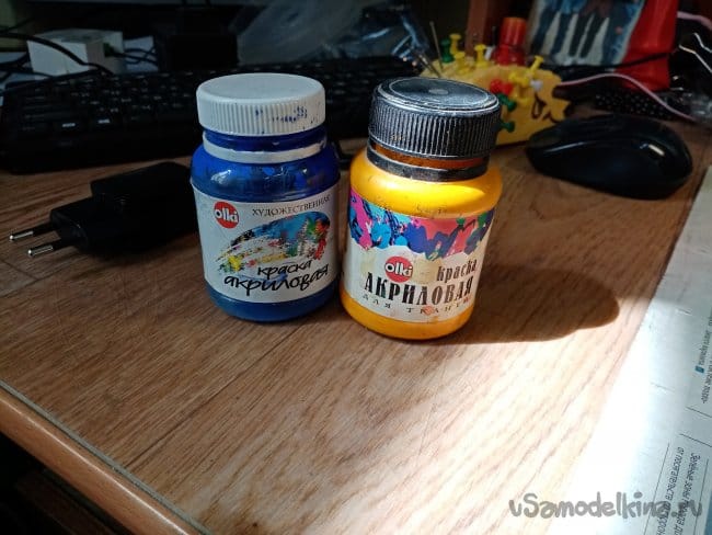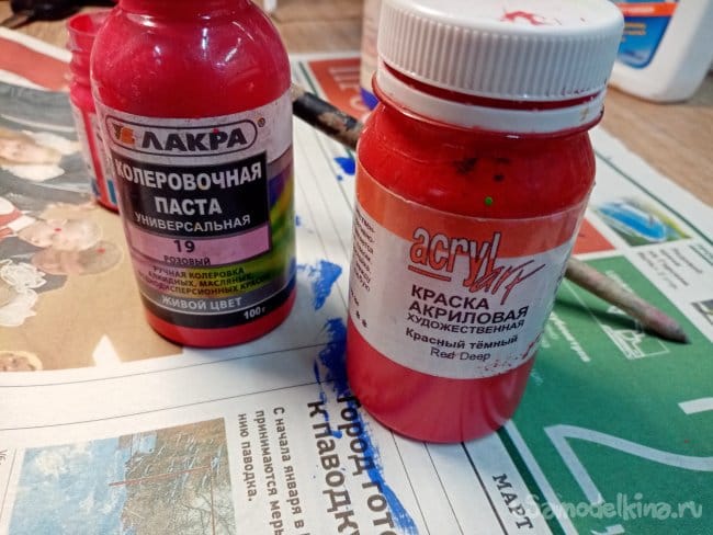 Красный закончился, развожу колеровочную пасту слегка водой и немного клея пва. Вполне себе получилась красочка.