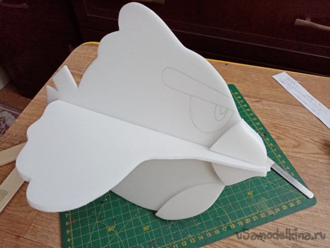 Вторую птичку, также пришлось сдвигать и переделывать крылья на три сантиметра в плюсе.