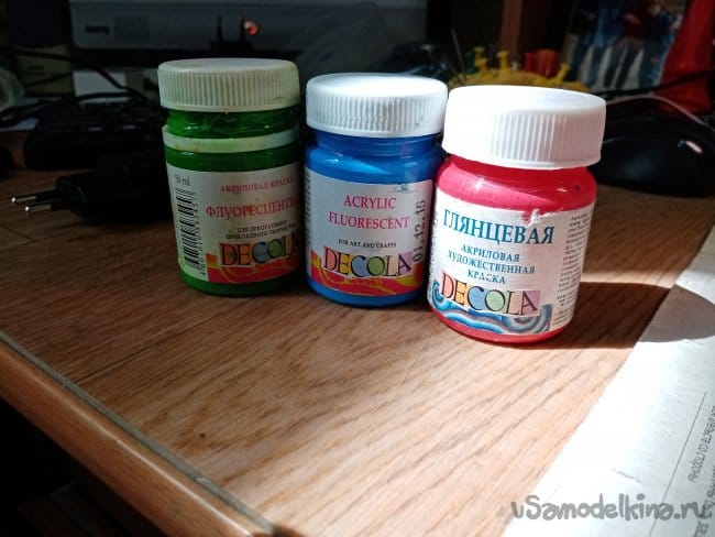 Чего-то не случилось купить акриловых красок, поэтому раскрасил скотчем.