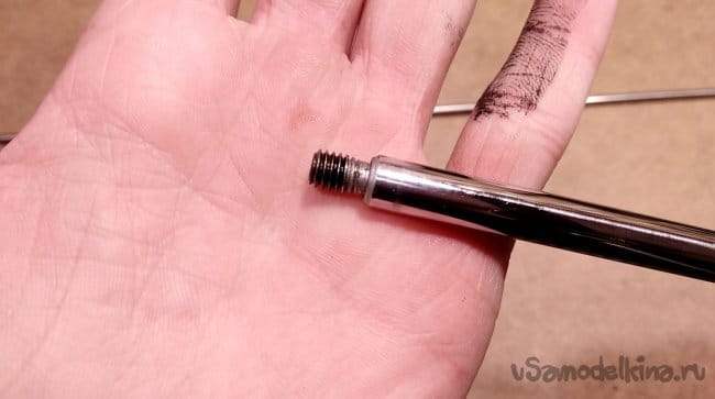 Стойка от дверей багажника и электрод толщиною 4 мм будут служить направляющими. В стойке есть резьба под гайку м6.