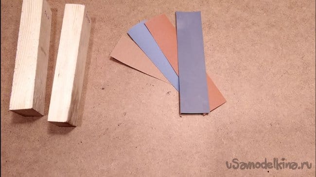НУ, а для заточки нужны брусочки которые я сделал сам, из дерева и наждачной бумаги.