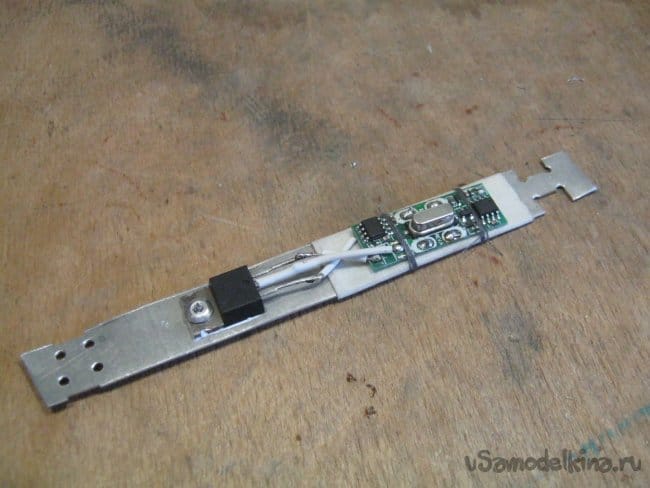 Проволочные выводы внешнего транзистора перепаял накрест для удобной установки с платой на общем основании-теплоотводе.