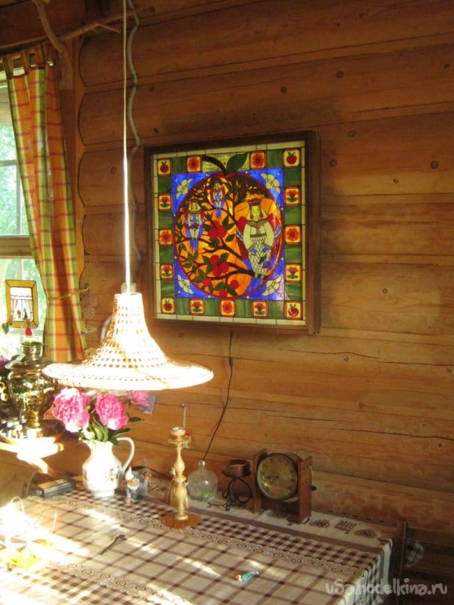 Декоративное цветное стекло – материал особенный, лучший его вид – на просвет, как например, в оконных витражах, однако, такой витраж не везде уместен и удобен практически. Плоский светильник с витражом-плафоном позволяет значительно свободнее декорировать помещение, такой светильник легко заменить, перевесить, подарить.