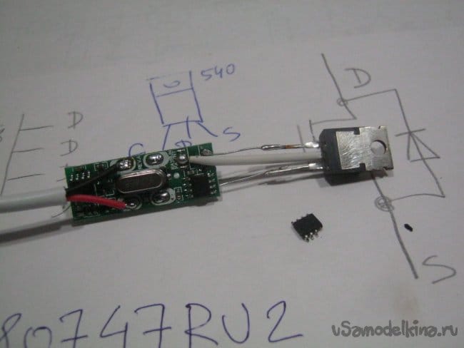Для демонтажа применил самодельную низковольтную паяльную станцию, сетевой паяльник, при работе с тонкой сложной аппаратурой лучше выключать (паять прогретым и отключенным от сети). В удобных точках печатного монтажа припаяны отрезки из нетолстого медного луженого провода, к ним подключен внешний IRF 540.