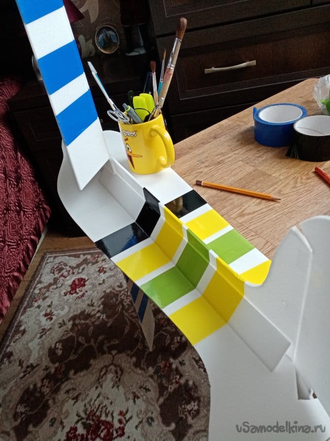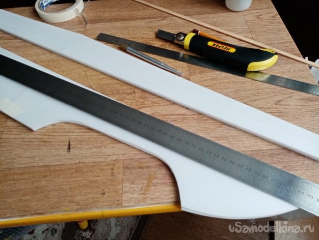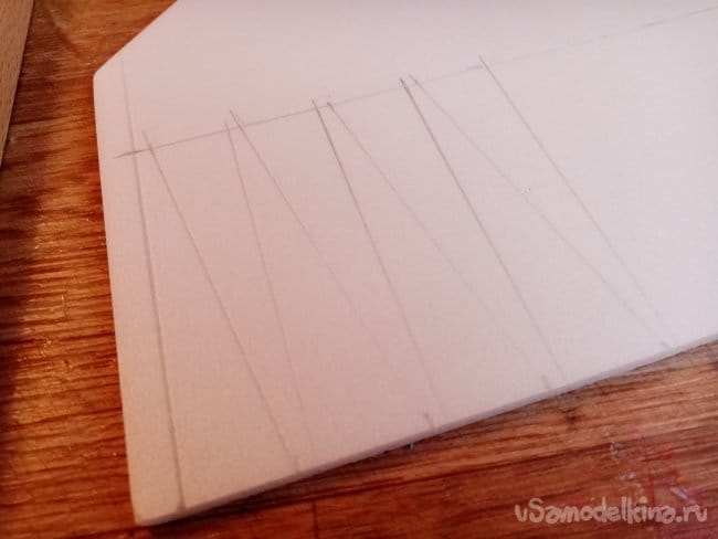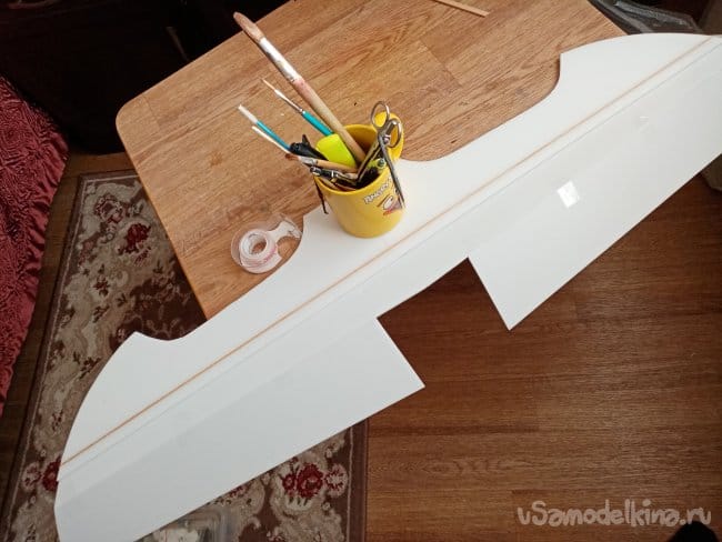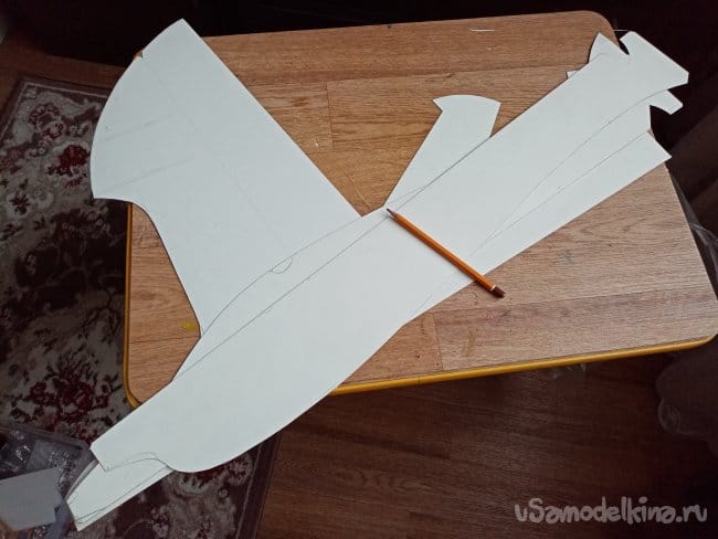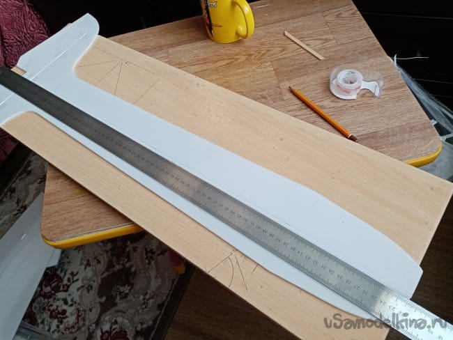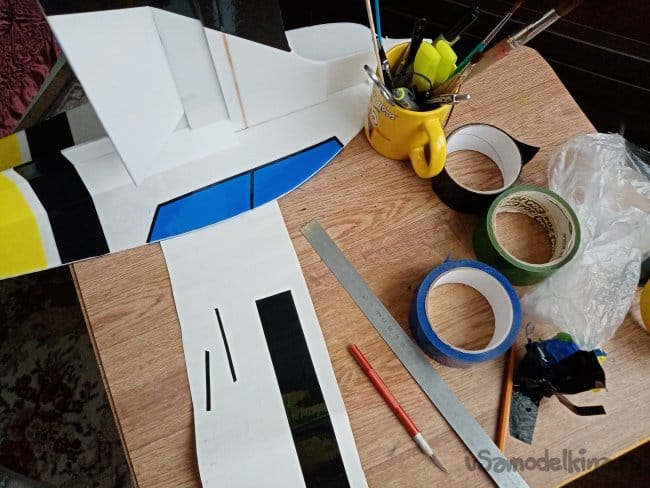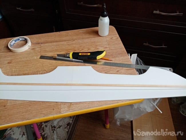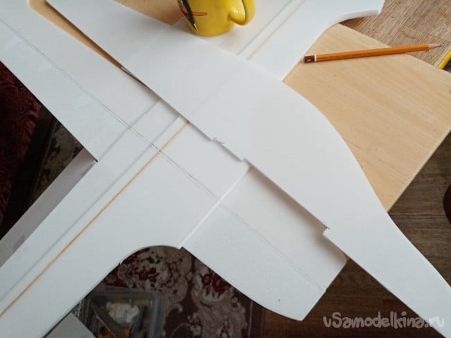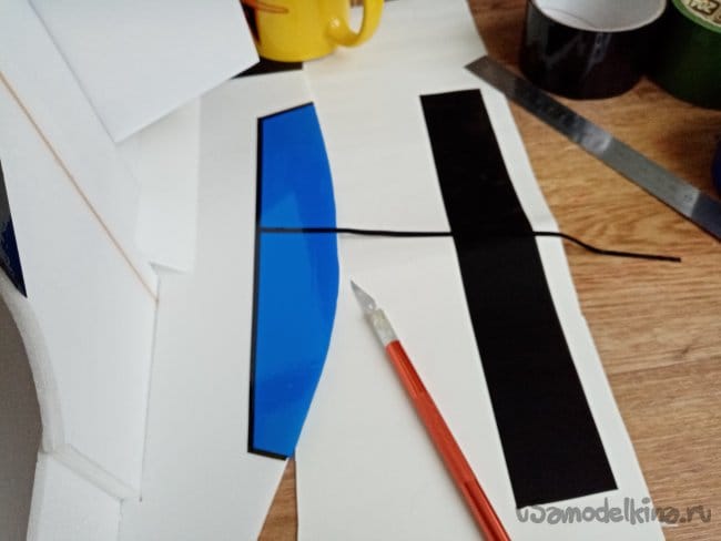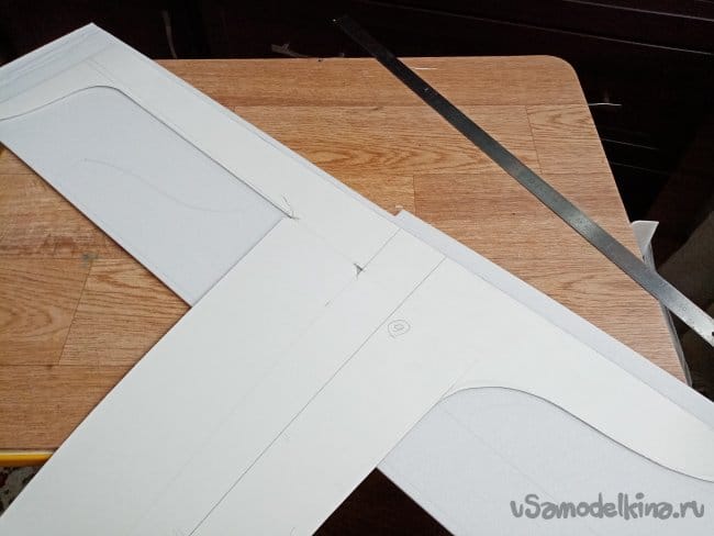 Затем размечаю на фюзеляже линию приклейки вертикальных элементов с двух сторон. по этой разметке буду наносить клей и устанавливать .