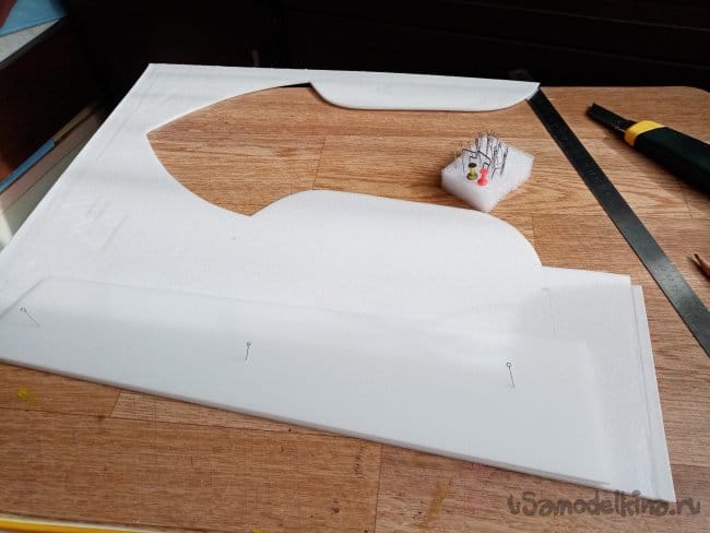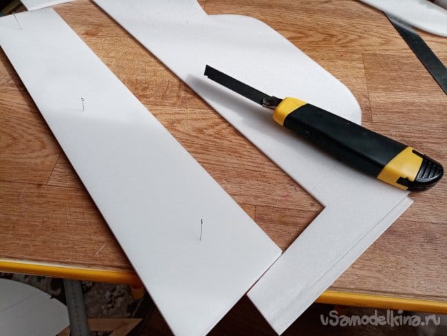 Прорези под петли делаю лезвием, заточенным со всех сторон Очень остро. Иначе будет мять пенопласт.
