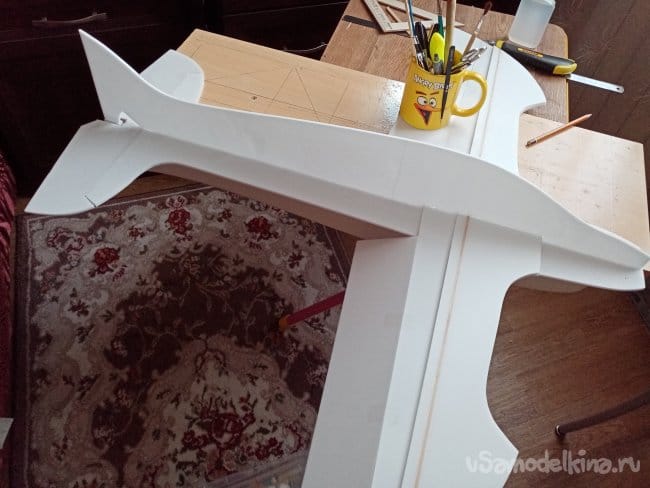 Изначально крыло планировал делать заодно с горизонталью фюзеляжа, перепланировал эту деталь. Крыло делаю накладное, так прочнее конструктив.