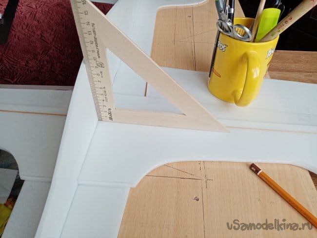 Размечаю и вырезаю длинные треугольники усиления в носовой части для моторамы.