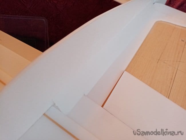 Подгоняю верхнюю пластину, кабинку. нужно предусмотреть вырез под накладку крыла.