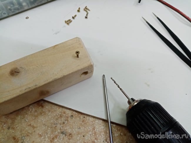 Под диаметр шурупов подбираю сверло. Контрольное отверстие, входит достаточно туго шурупчик.