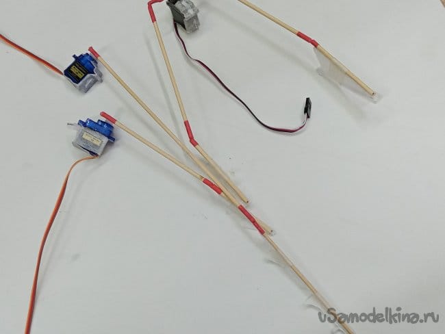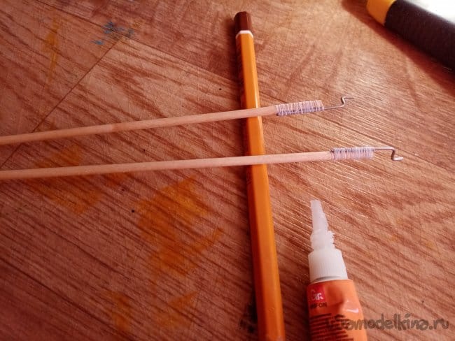 Кончики тяг по классике, г образные загогулины из скрепок примотанные никами и пролитые циакрином.