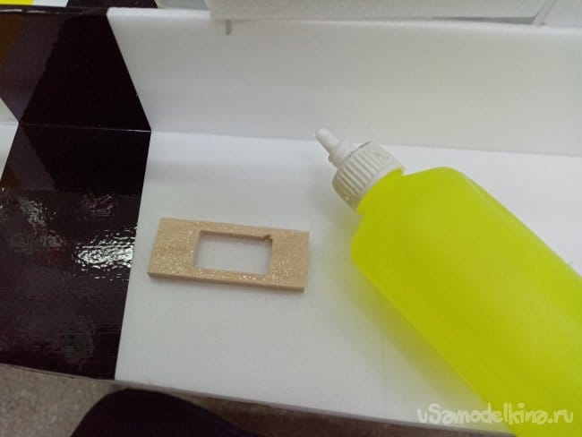 Тонкость процесса навески. Сначала наношу клей на кончики петель с двух сторон. При установки в прорезь клей сам размажется по плоскости петли. Жду пока схватится, затем опять наношу клей на кончики петель и вставляю в прорези.