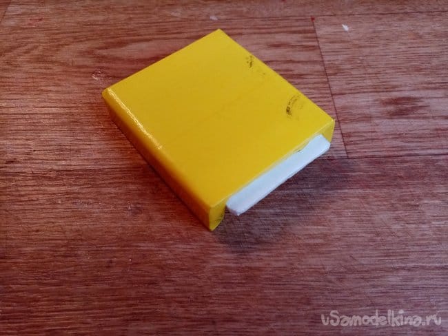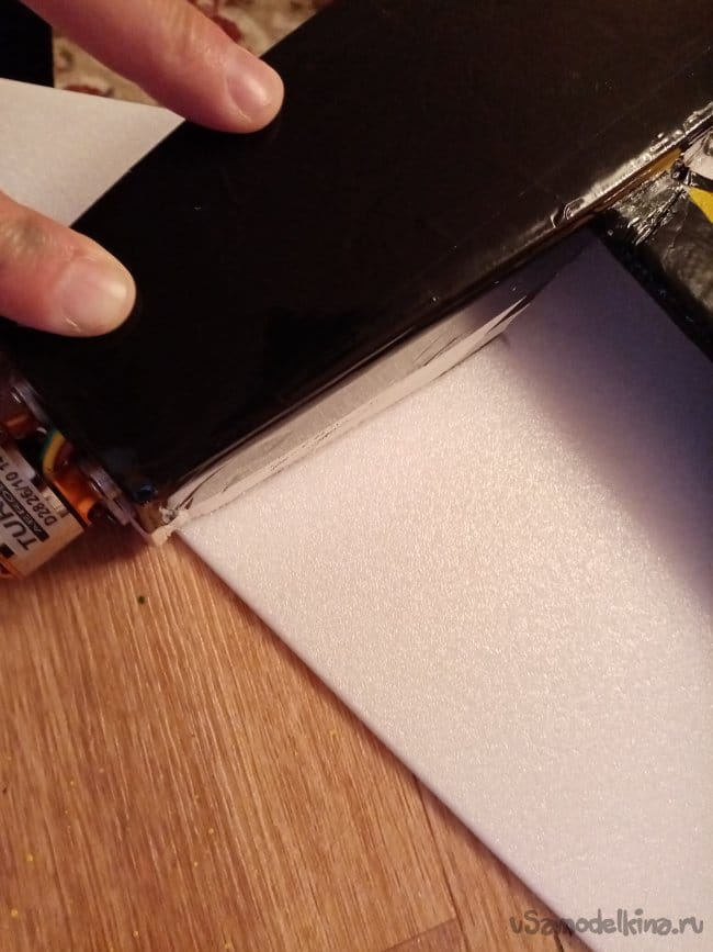 Верхнюю крышку полностью убираю, подравниваю края и наклеиваю новую, но уже в два слоя потолочки.