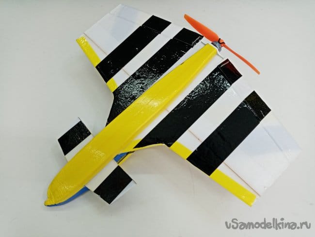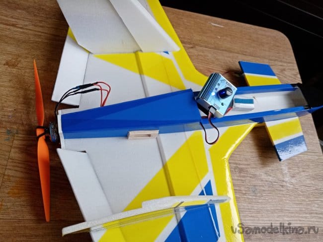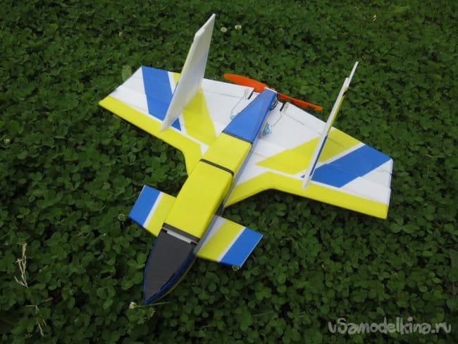 По результатам полетов выявилась одна неприятная особенность, на вираже самолетик норовит соскользнуть на крыло. Небольшая модернизация устранила этот дефект.