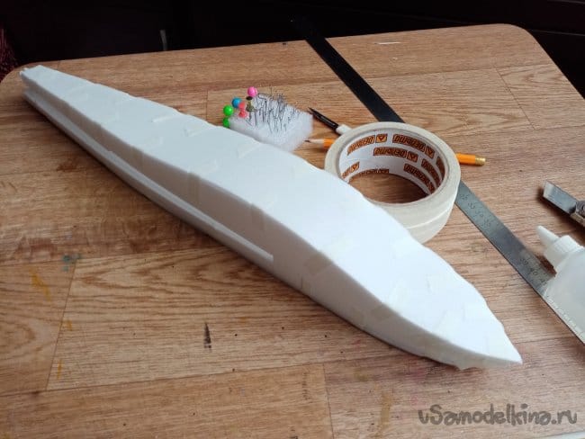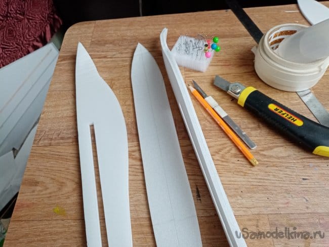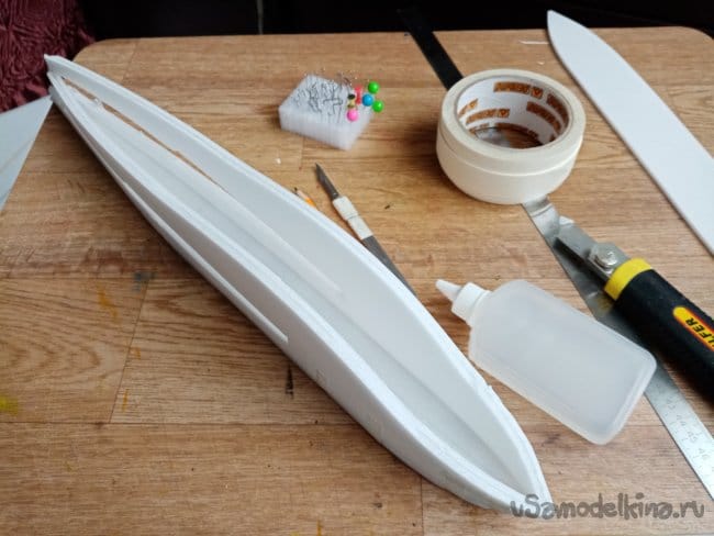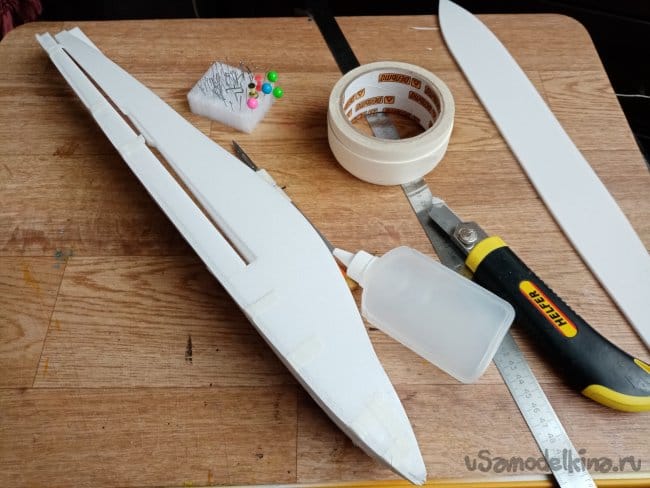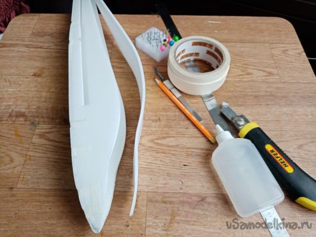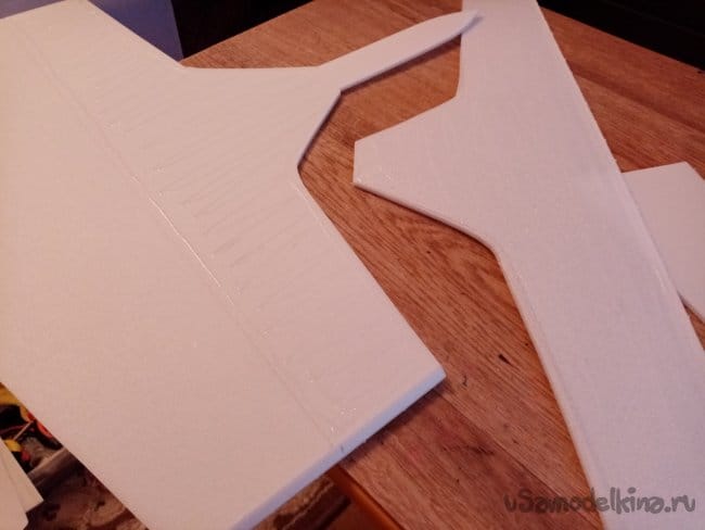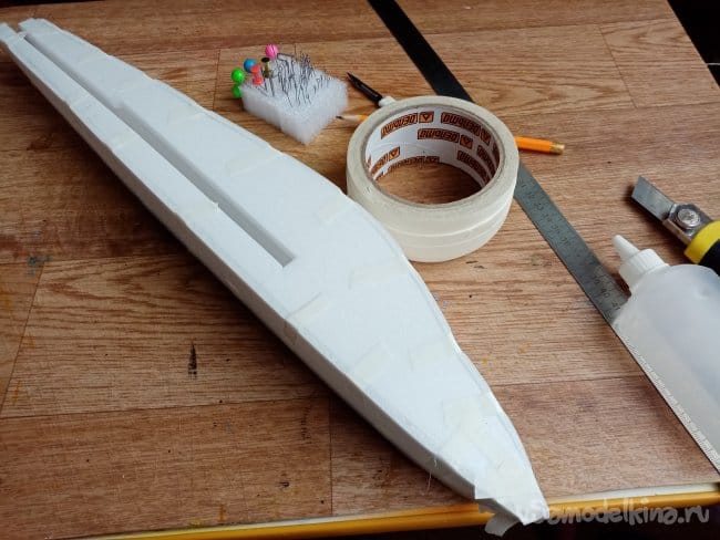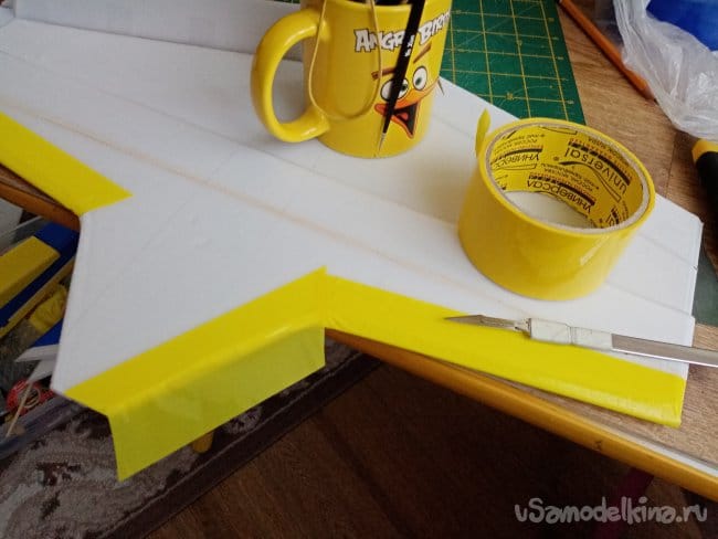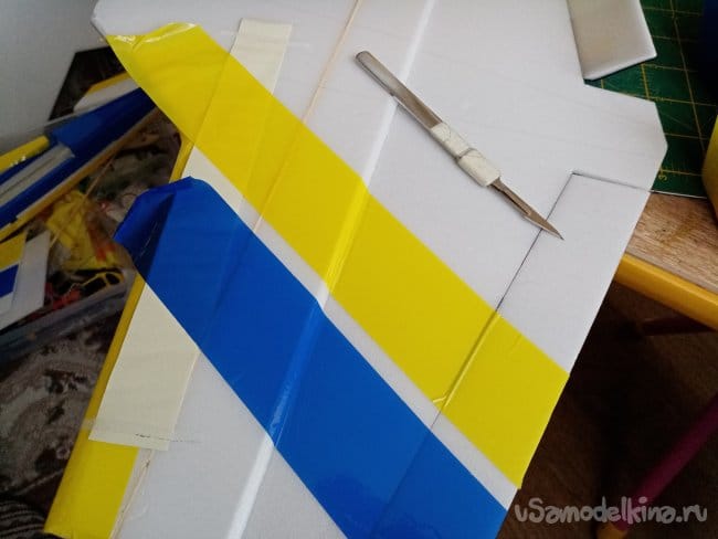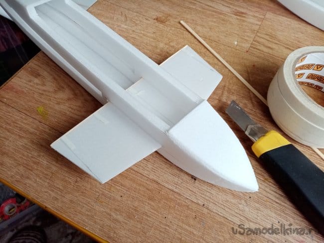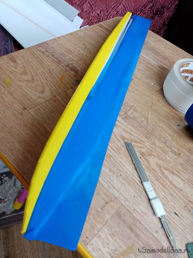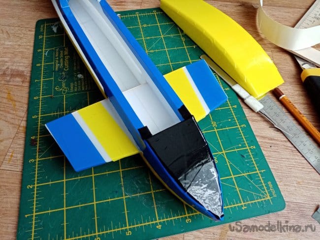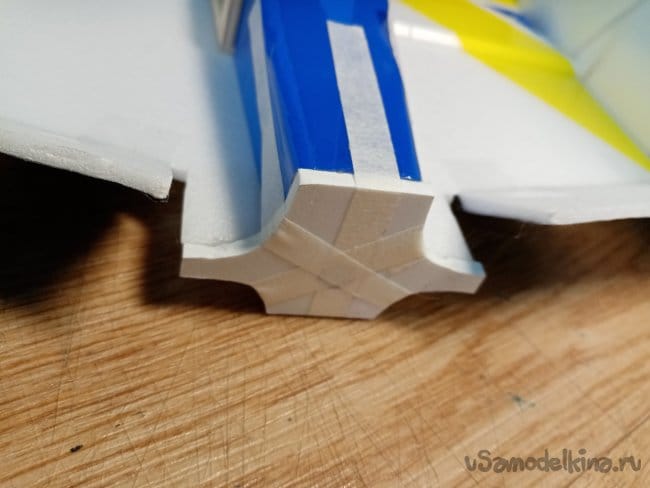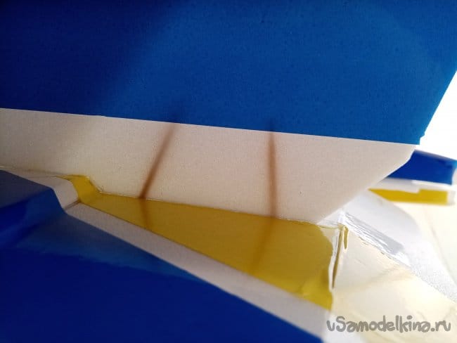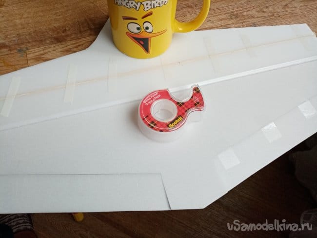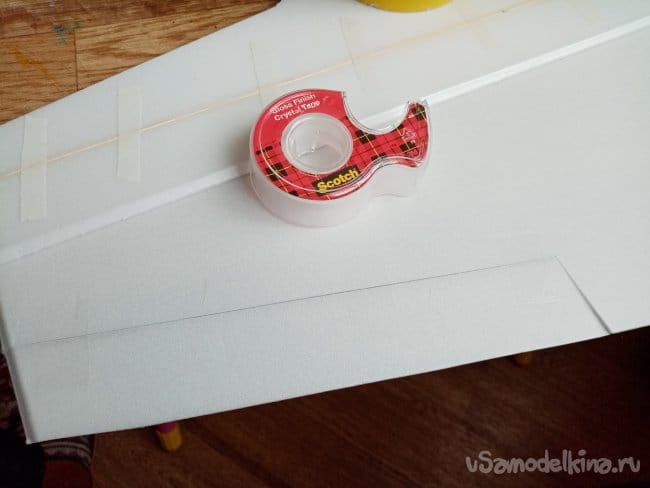 Пока кили не приклеиваю, будут мешаться в момент оклеивания скотчем.