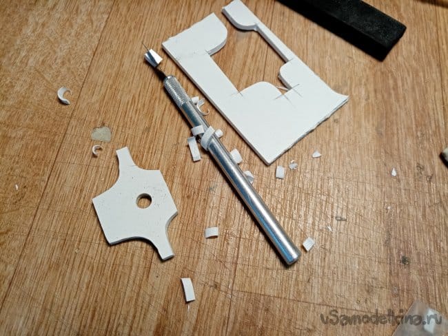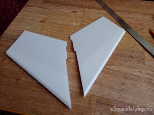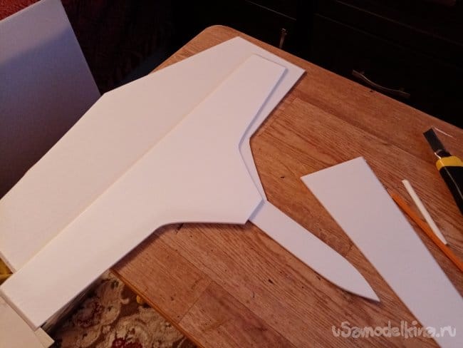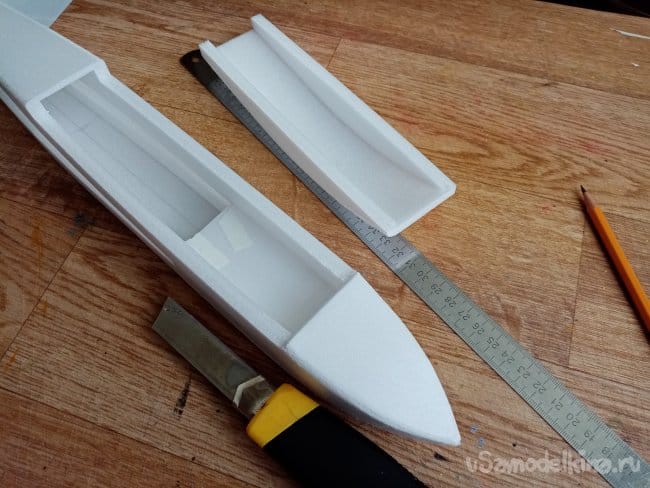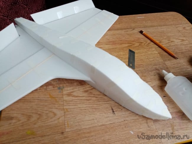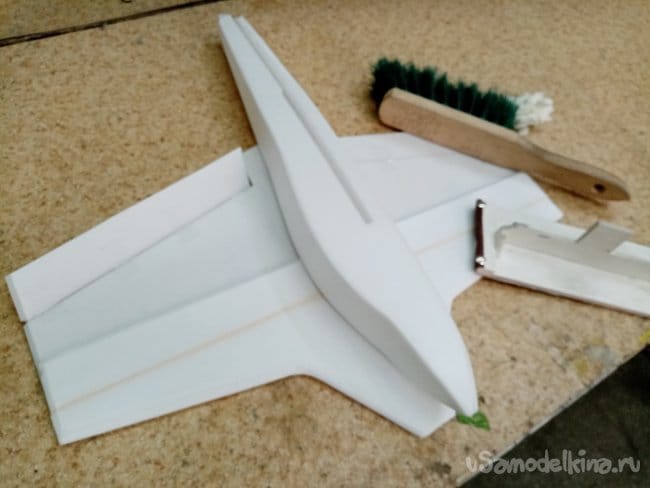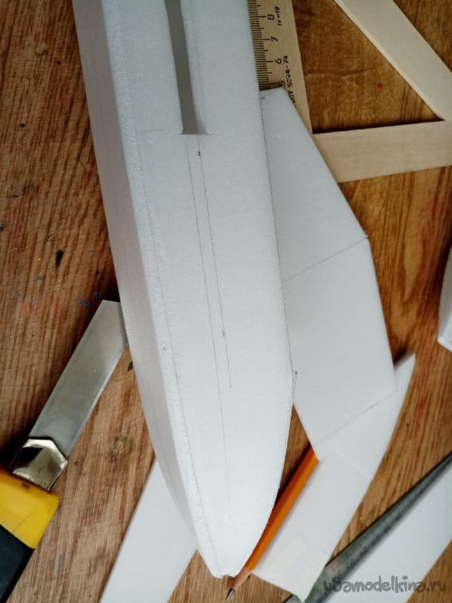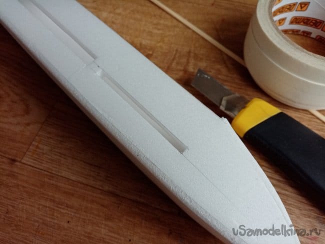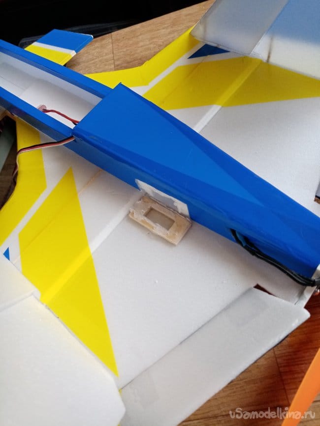 Клей подсох вырезаю в боковых стенках отверстия под крыло.