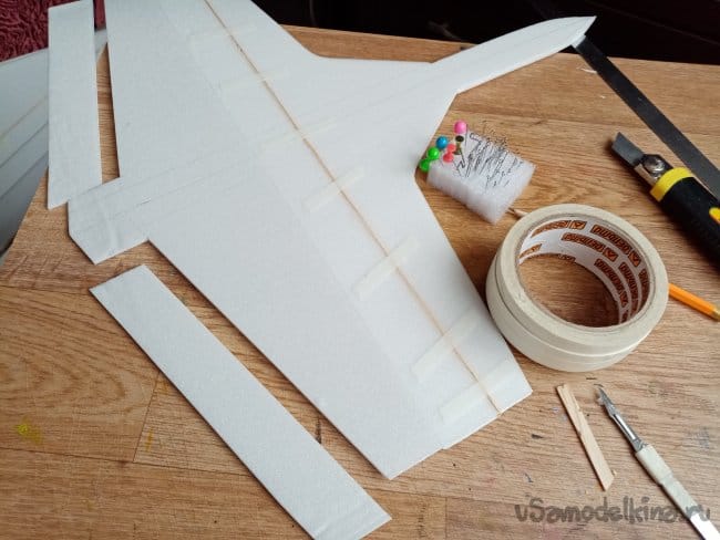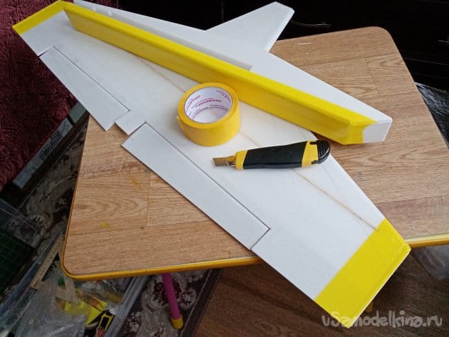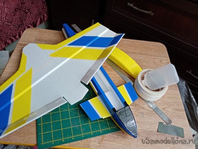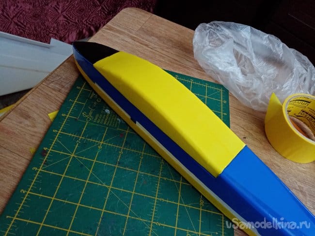 Пока фюзеляж зафиксированный малярным скотчем подсыхает, занимаюсь крылом.