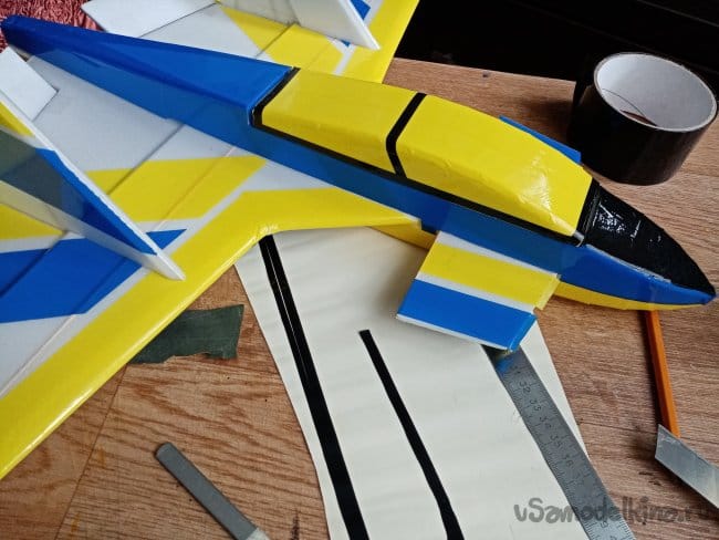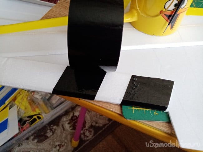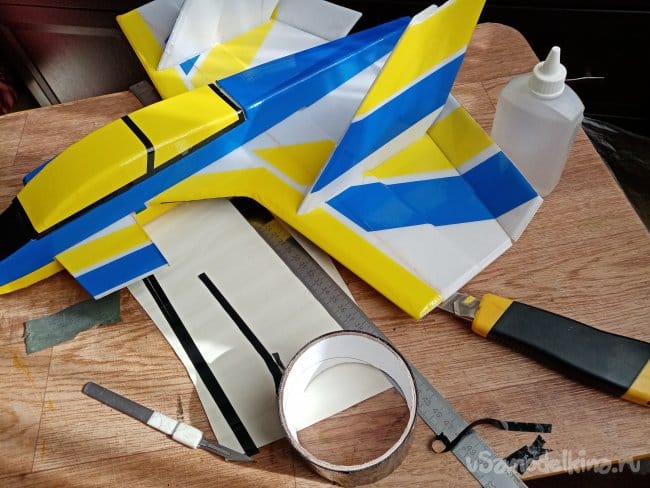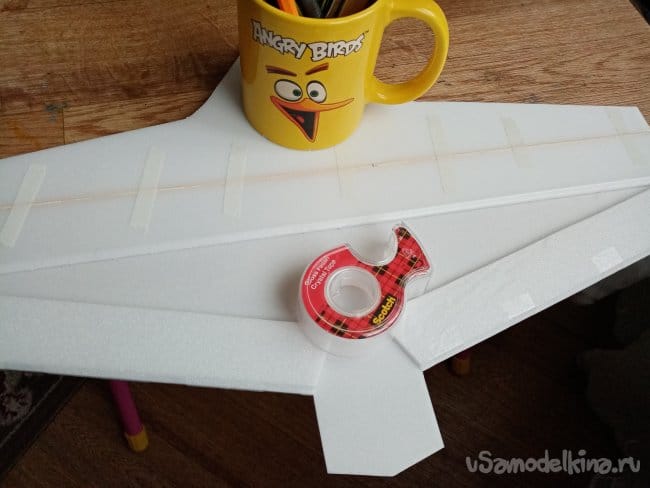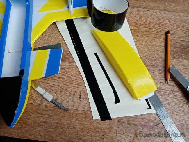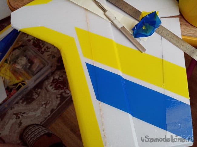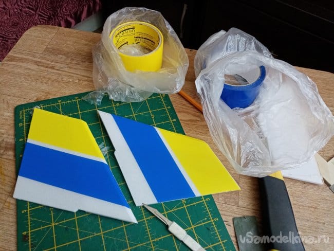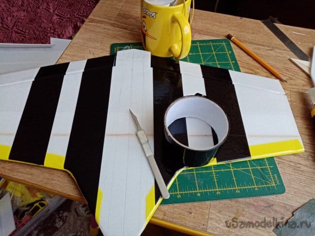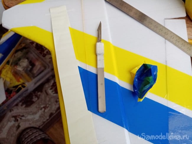 На крыльях формирую переднюю грань скотча на подложке от пленки ОРАКАЛ.