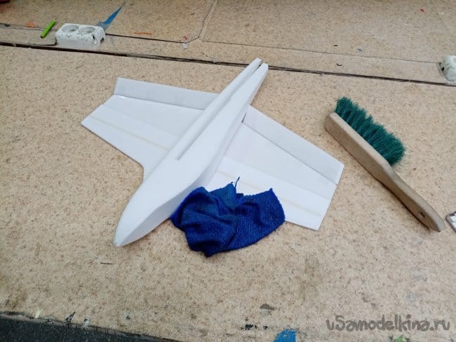Пенопластовую пыль от шкурения удаляю в несколько приемов. Поскольку она зараза электризуется и липнет ко всему подряд. Сначала мягкой сметкой постоянно отряхивая её, затем остатки самой мелкой и противной фракции уже малость влажной тряпочкой. Это весьма нужная процедура, иначе пыль попадет пл скотч или краску и будут некрасивые пупырышечки.