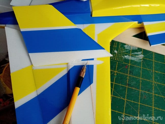 Прорезаю немного шире отверстие между крылом и элевоном. При нагрузках возможно заклинивание системы.