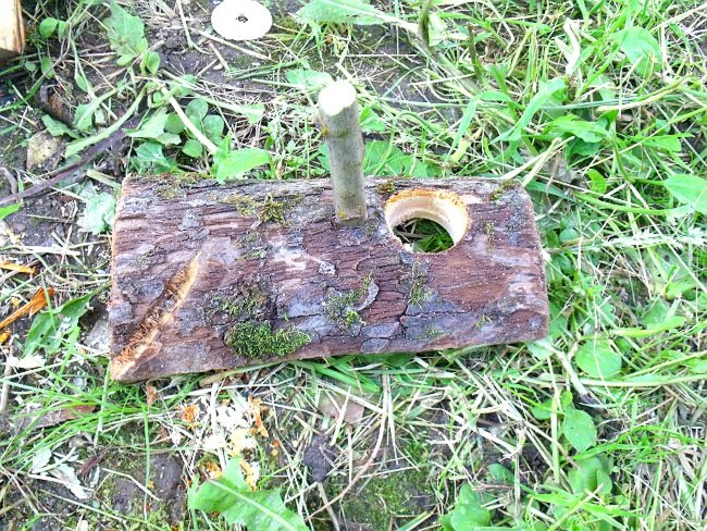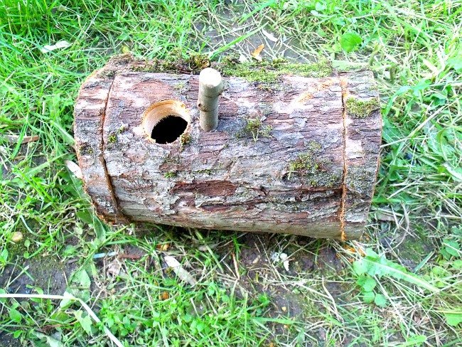 В одной из частей сверлится дырка для птицы, по научному леток, и дырка для палки, на которой птица будет сидеть.