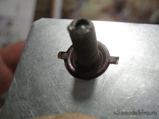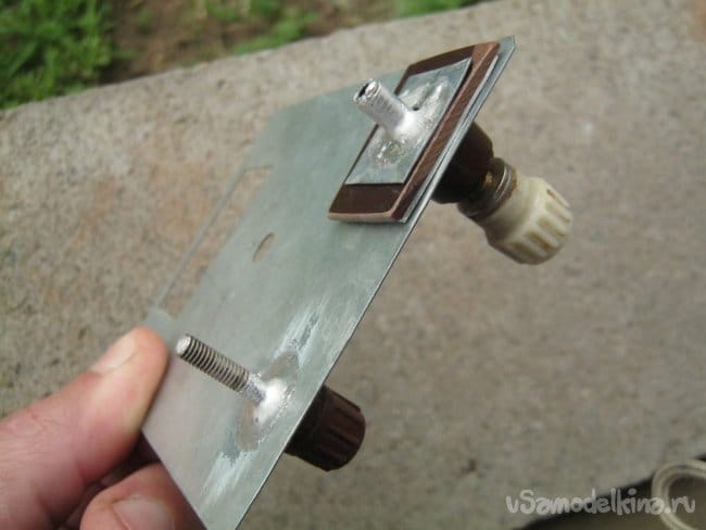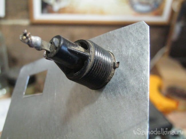 Ряд установочных элементов были разукомплектованы или имели небольшие дефекты, поломки, не лишающие впрочем, их работоспособности. Например, для изолированной клеммы «-» не удалось найти гайку-крепеж с мелкошаговой резьбой, пришлось применить пайку и импровизированный изолятор. Клемму общего провода, а здесь это «+» впаял в стенку насмерть.