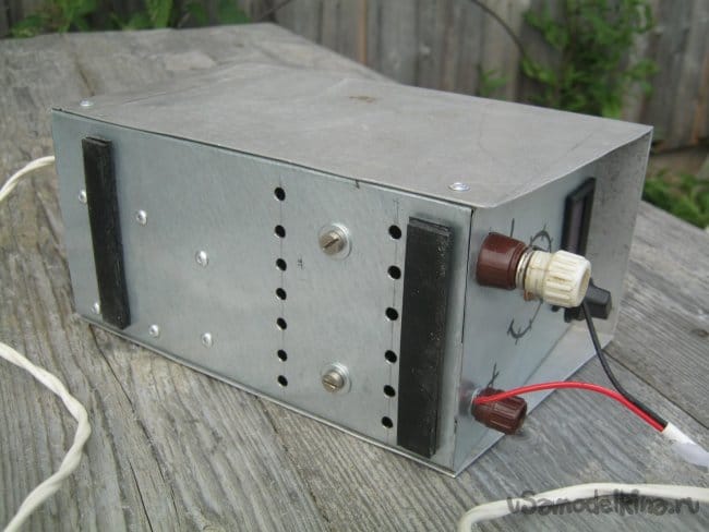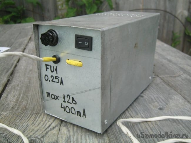 Адаптер-зарядка от старого телефона (БП измерителя) несколько доработана – удалена штатная сетевая вилка, вместо нее наружу выведена пара проводов. Это безопаснее и уменьшает потребное для узла место.