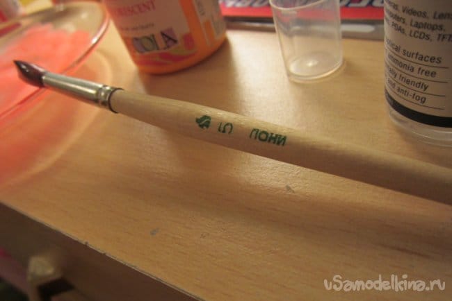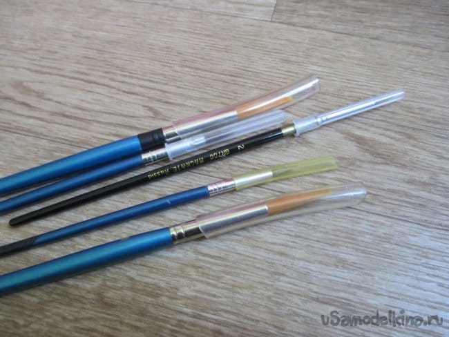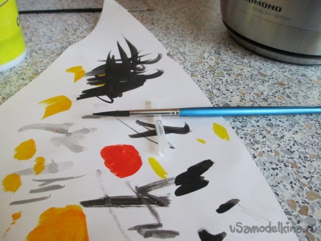 Подобрал кучку красок, буду думать над общим колористическим решением. Заодно и кисточки попробовал, какая лучше подойдет для нанесения этого варианта рисунка. Это вам не полоски рисовать, цветочки труднее.