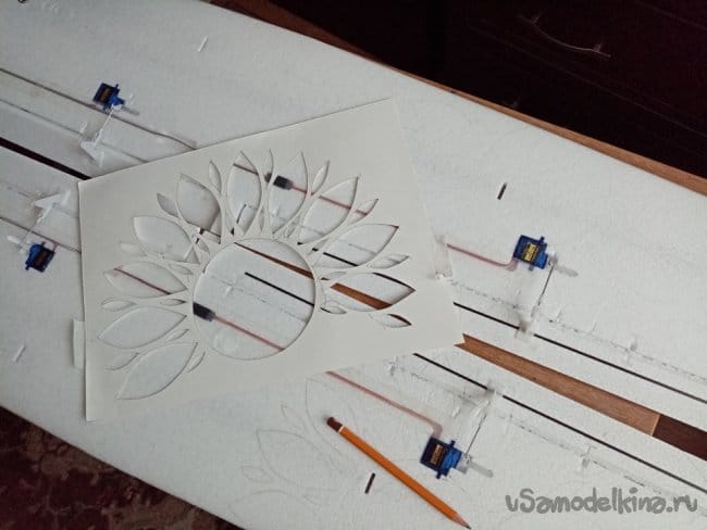 Пусть будут цветочки. Скопировал рисунок вырезал разметочный трафарет из плотной бумаги.