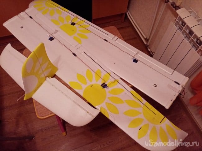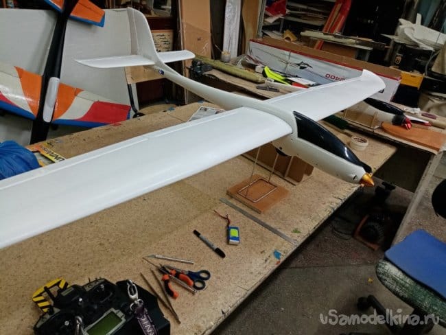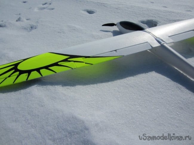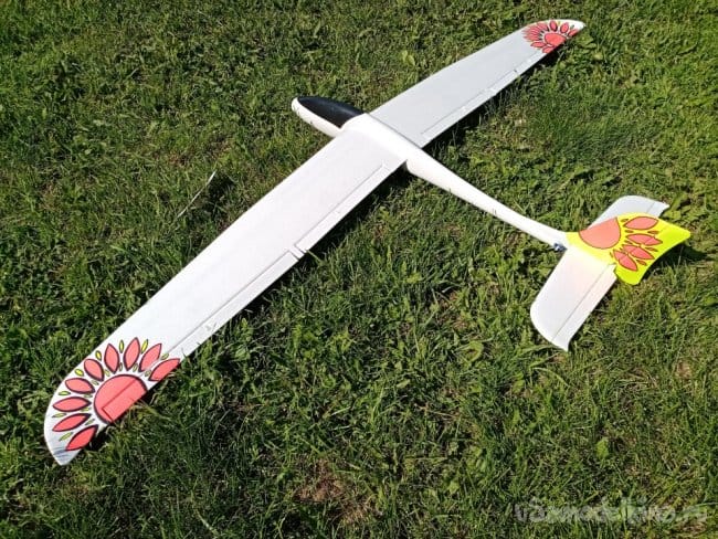 ДА....чего то я разошелся, собственно не об этом хотел рассказать. Планер практически красиво белый и в небе не слишком читается. Наклейки приложенные к этим самолетам мне совершенно не нравятся, как по дизайну, так и по эксплуатационным характеристикам. От нагрева на солнце и редких протирок тряпочкой от пыли и следов травки в которую сажусь на полянке, норовят начать отклеиваться особенно по тонким и длинным кончикам рисунка.